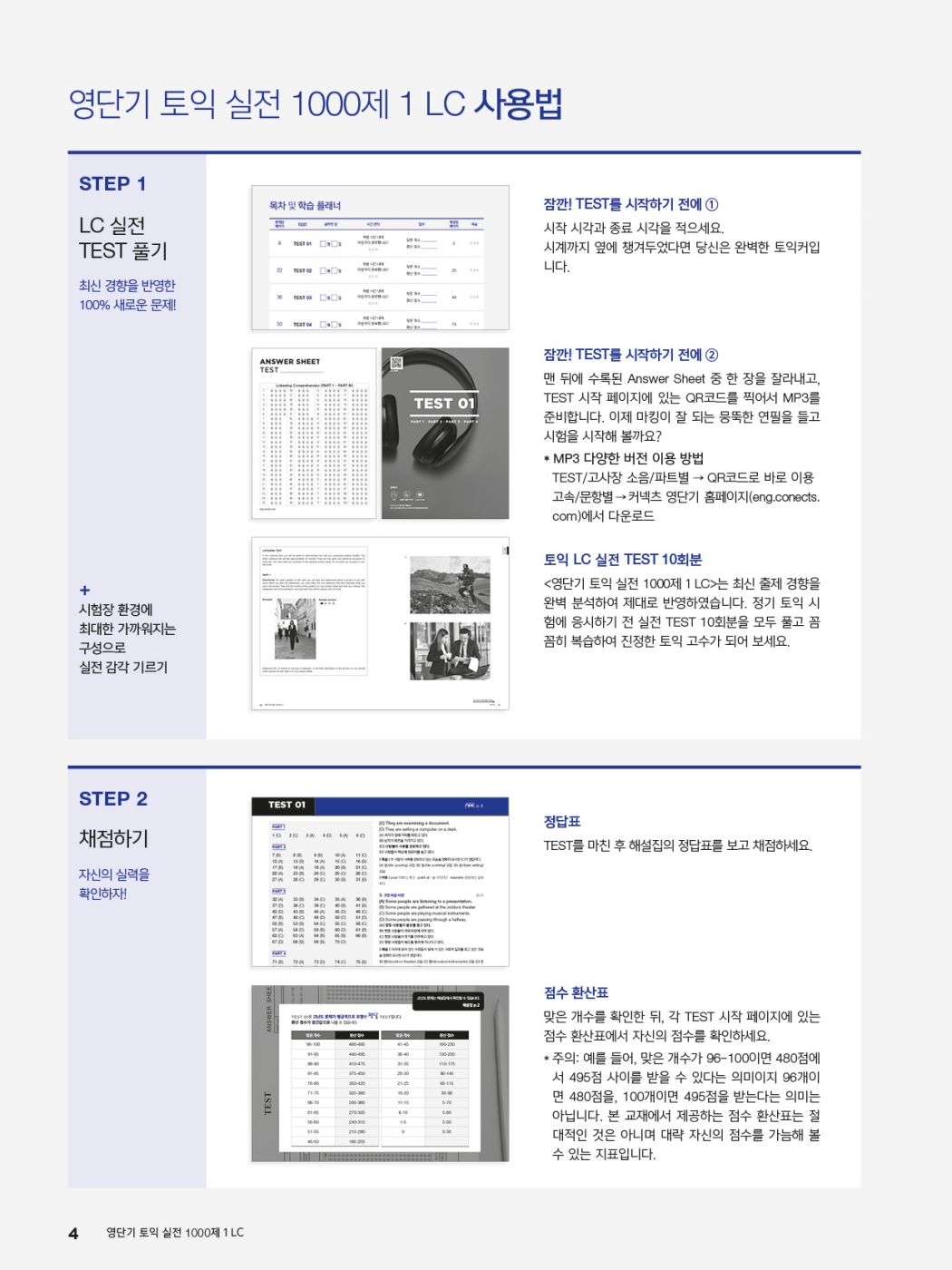 - 채점하고 맞은 개수를 확인한 뒤, 각 TEST 시작 페이지에 있는 점수 환산표에서 자신의 점수를 확인합니다.