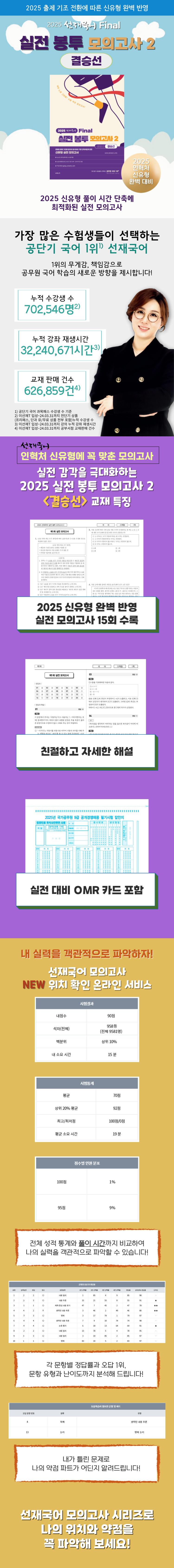 3. 실전과 똑같은 형태의 시험지+OMR카드로 실전 감각을 극대화하고 문제 풀이 시간을 단축할 수 있습니다.