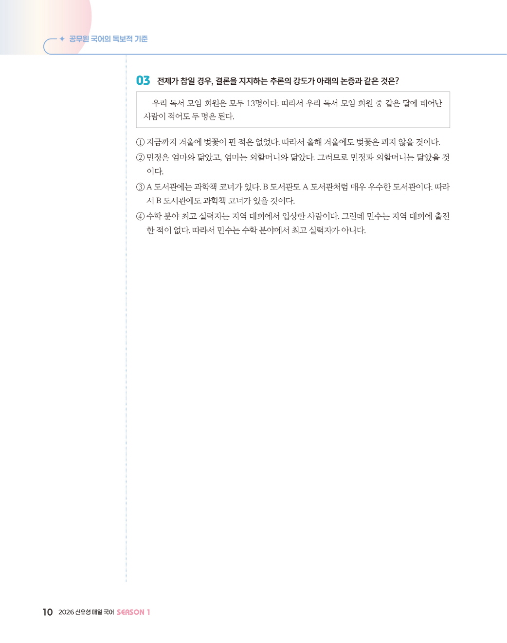 - 신유형에 강하다: 강화된 추론형 독해와 신영역 논리 문제를 다양하게 훈련할 수 있는
