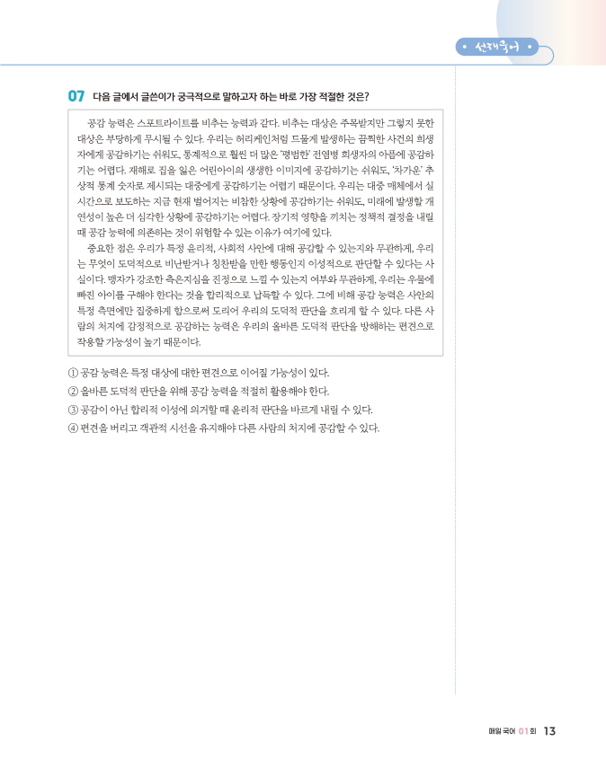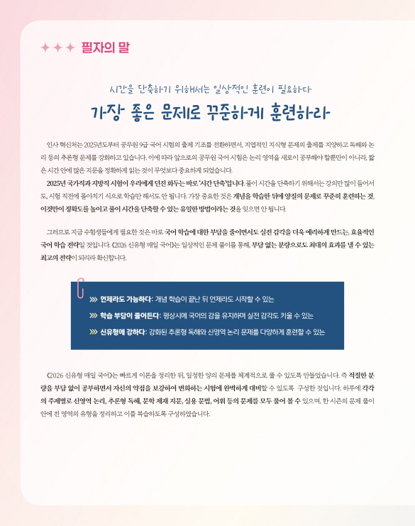 - 학습 부담이 줄어든다: 평상시에 국어의 감을 유지하며 실전 감각도 키울 수 있는