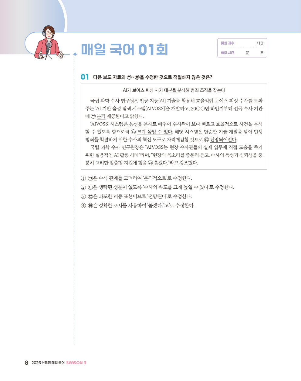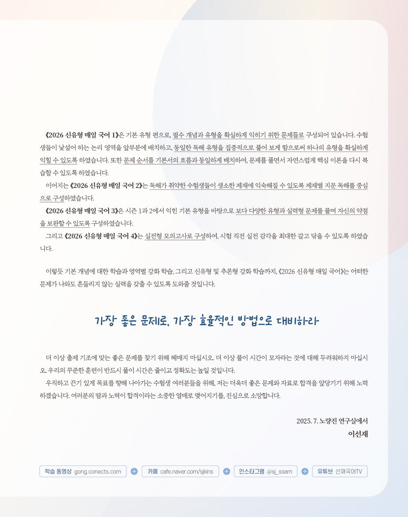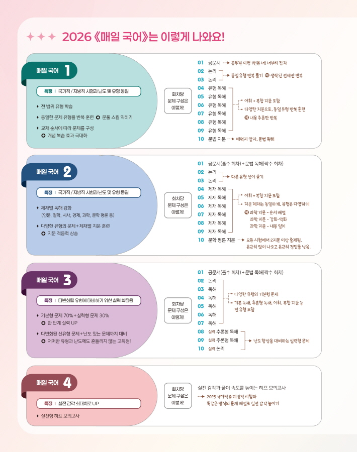 - 학습 부담이 줄어든다: 평상시에 국어의 감을 유지하며 실전 감각도 키울 수 있는