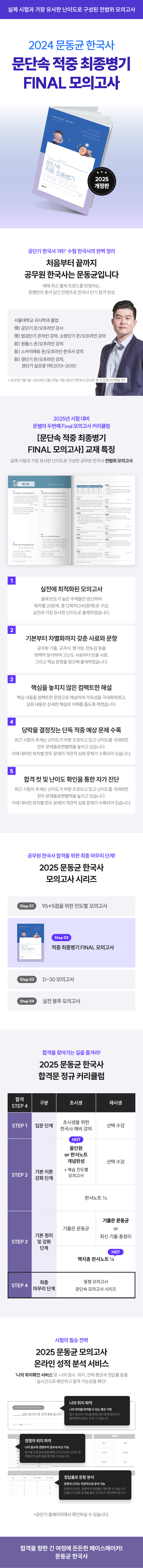 공무원 기출, 교과서, 평가원, 한능검 등을 완벽히 분석하여 고난도 사료부터 빈출 사료, 그리고 핵심 문항을 엄선해 출제하였습니다.