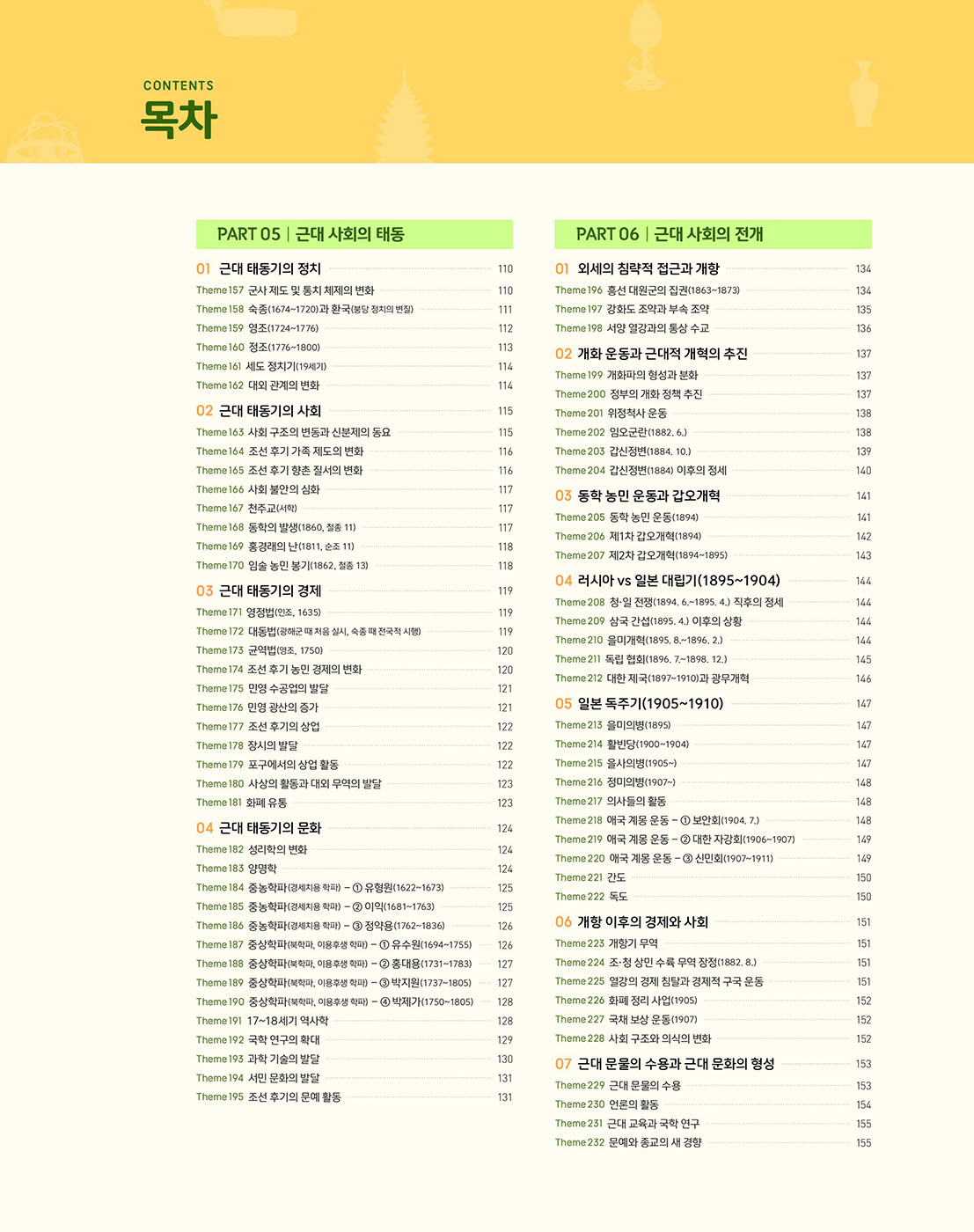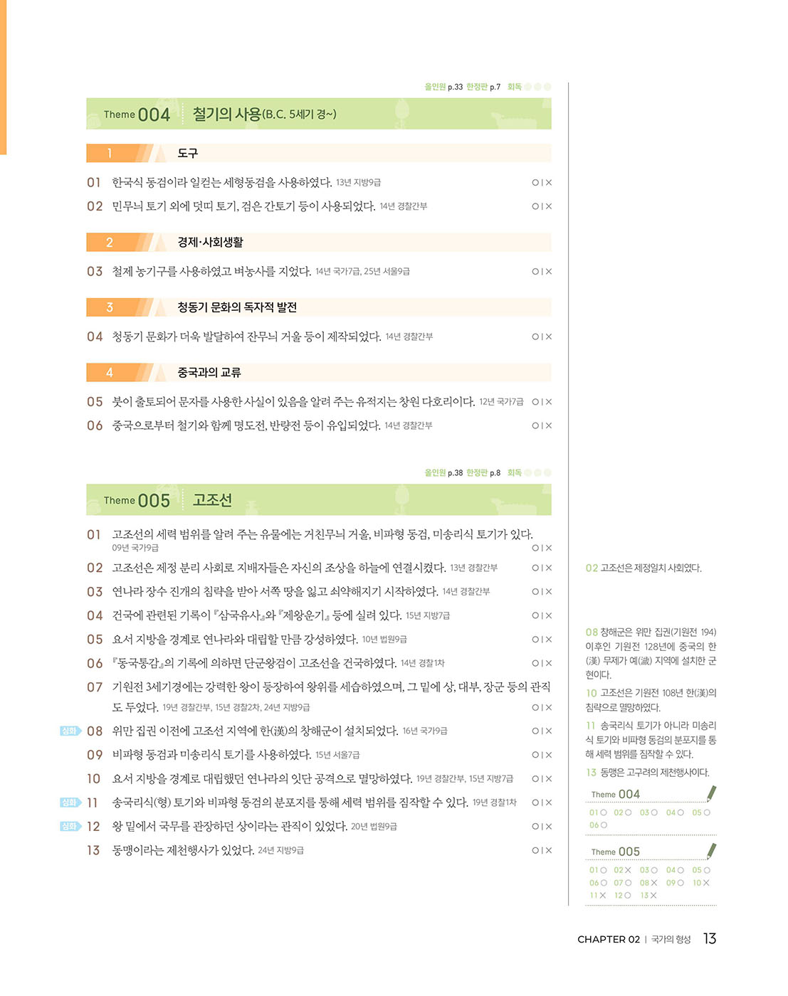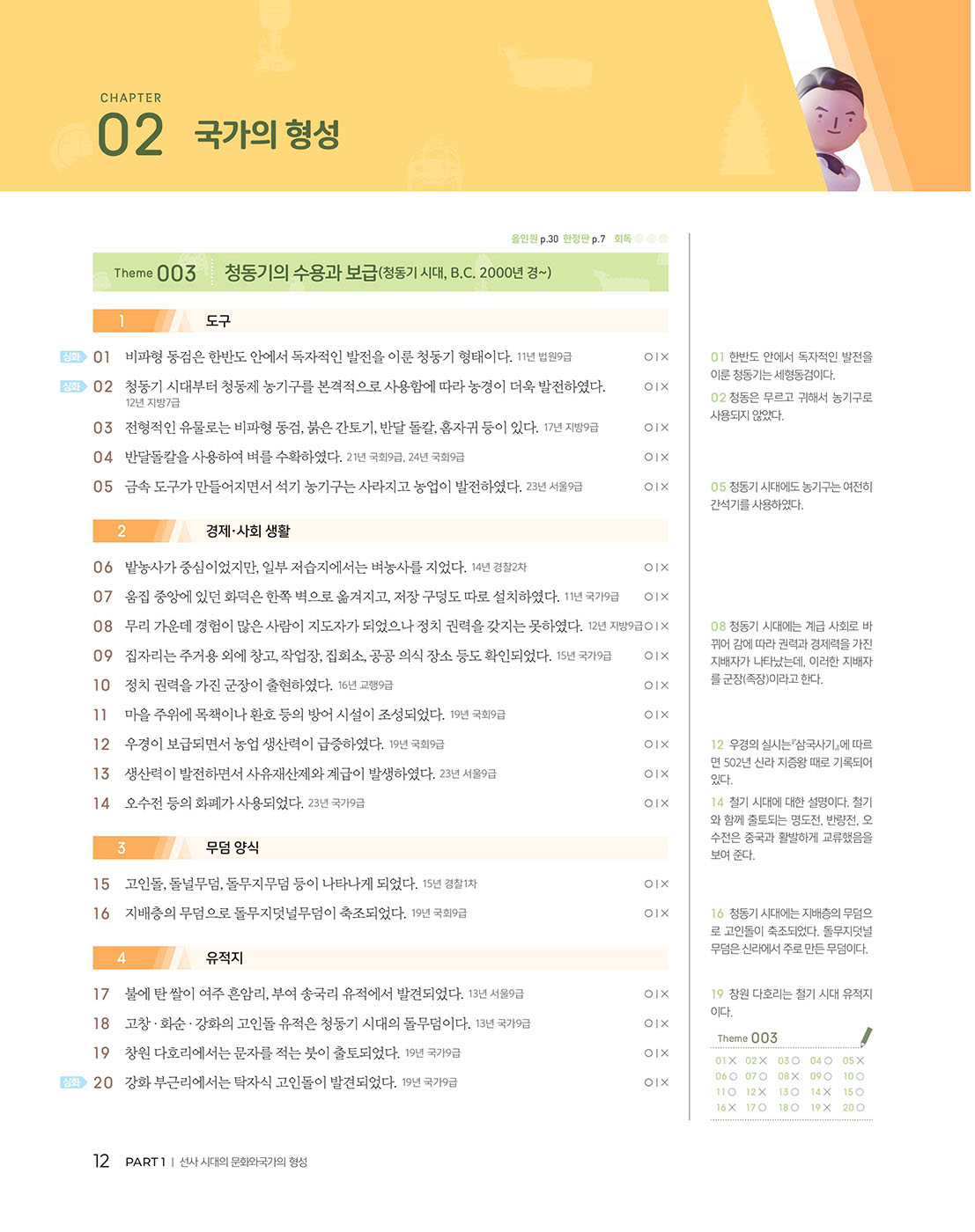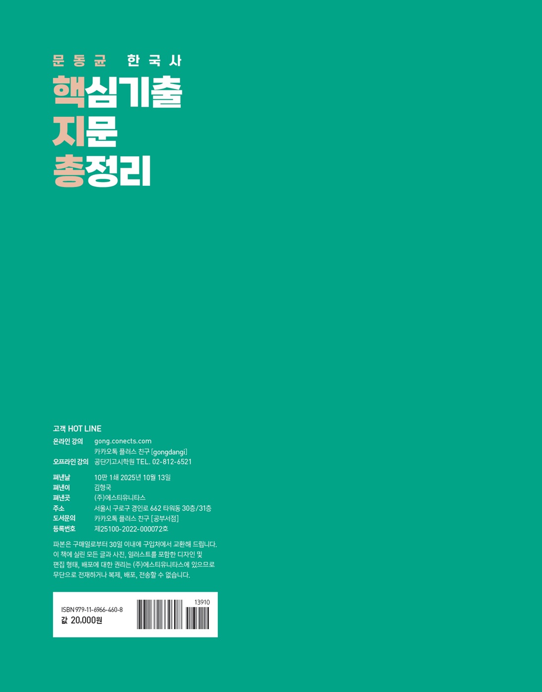 2025년에 출제된 한국사 시험의 기출 지문을 수록하여 최신 기출 트렌드를 바로 파악할 수 있습니다. 또한 세분화된 주제로 지문을 분류하였기 때문에 자신의 약점을 파악하여 학습의 효율을 높일 수 있습니다. 재출제 시 오답률이 높을 것으로 예상되는 심화 기출 지문 및 이슈가 되었던 지문은 별도로 표시하여 평이한 지문과의 차별을 두었습니다.