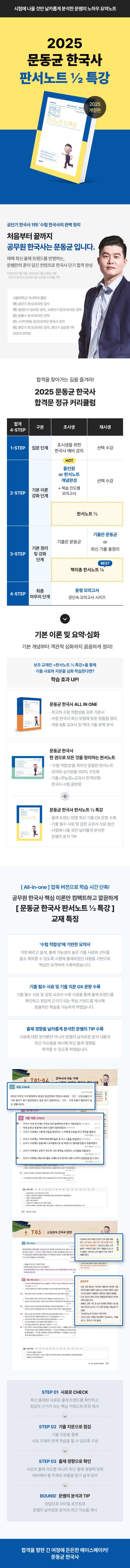 사료에 대한 분석뿐만 아니라 문쌤의 날카로운 분석 내용과 최근 이슈들을 제시하여 최신 출제 경향을 파악할 수 있습니다. 또한 주제별 출제 경향과 그 변화에 따른 대비 내용을 알기 쉽게 정리하여 시험에 완벽하게 대비할 수 있도록 하였습니다.