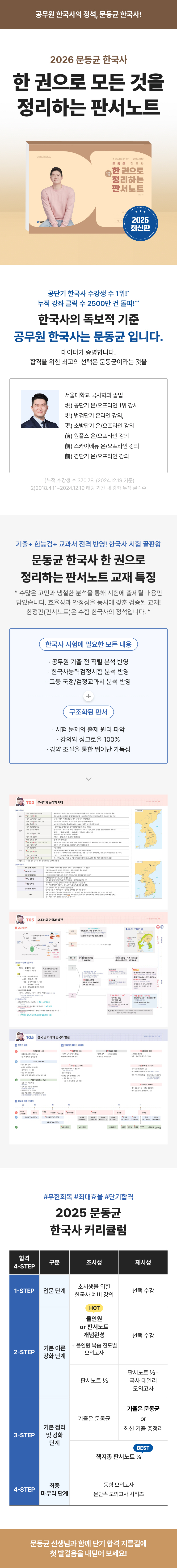 판서노트는 기출 및 공신력 있는 시험 및 교재들의 철저한 분석과 수많은 고민을 통해 엄선된 내용들로 이루어집니다. 그리고 수년간의 검증이 필요합니다. ‘수험 한국사 적중률 1위, 판매율 1위’라는 결과는 본 교재가 효율성과 안정성을 동시에 갖춘 수험에 가장 적합한 교재라는 것을 증명하고 있습니다.