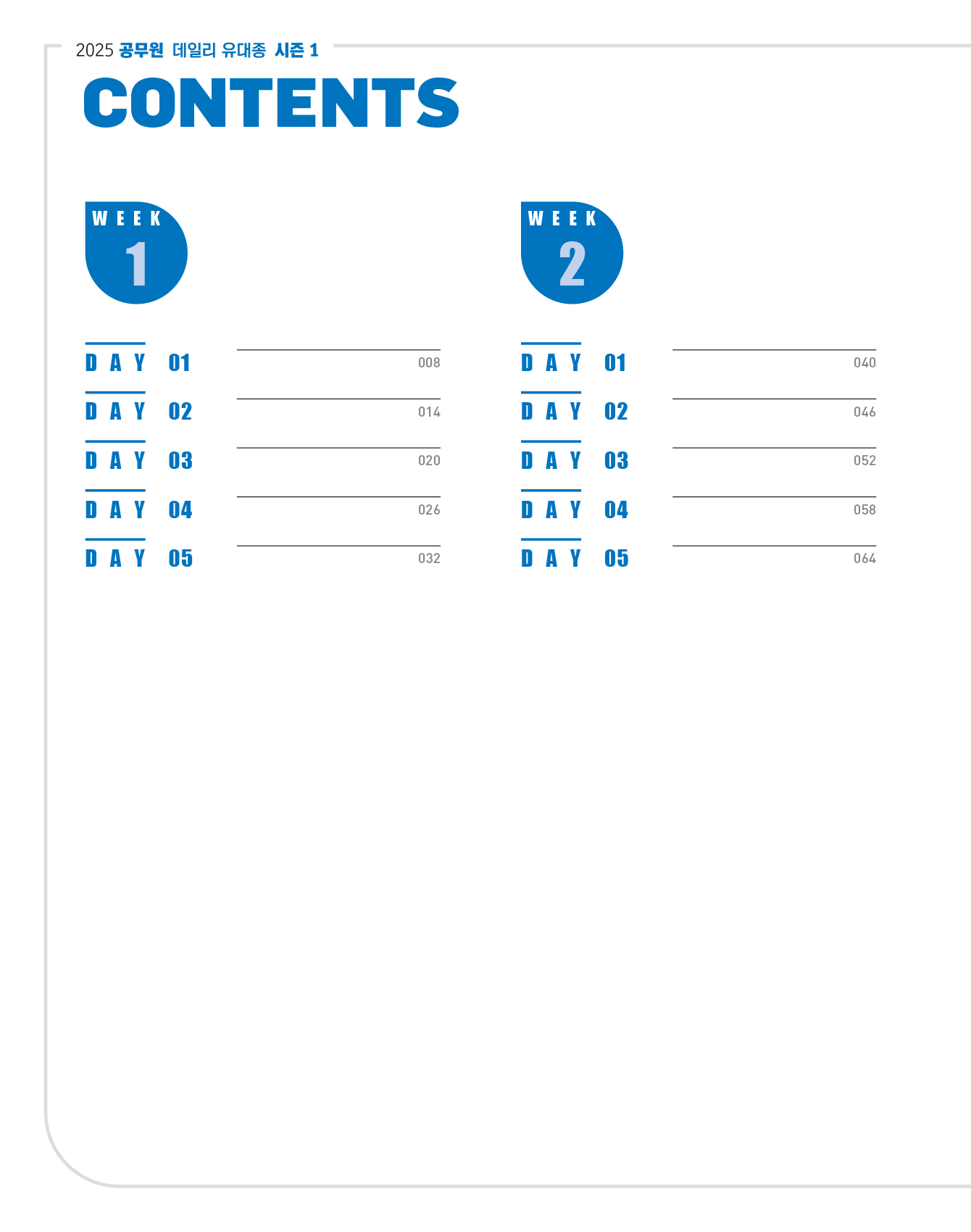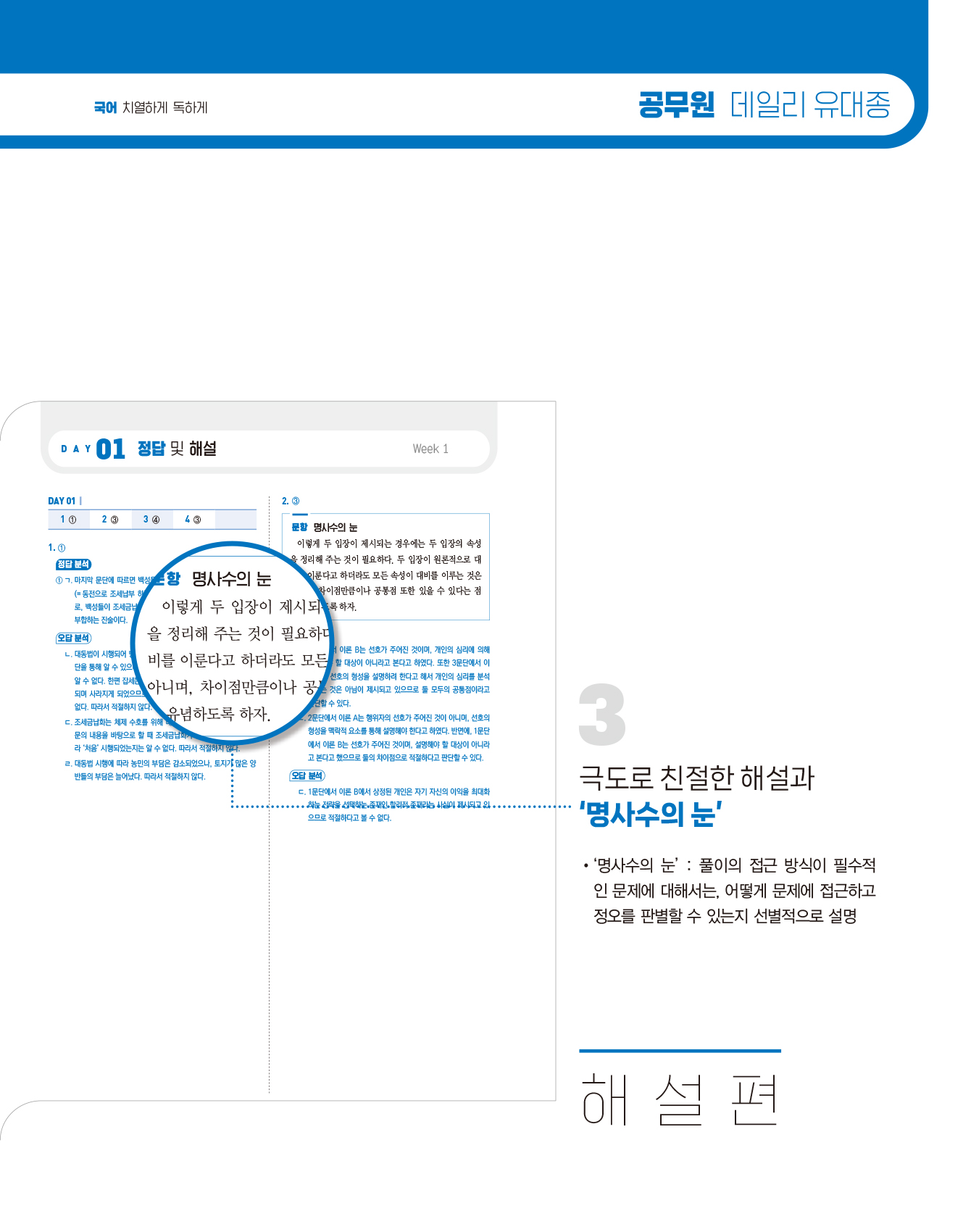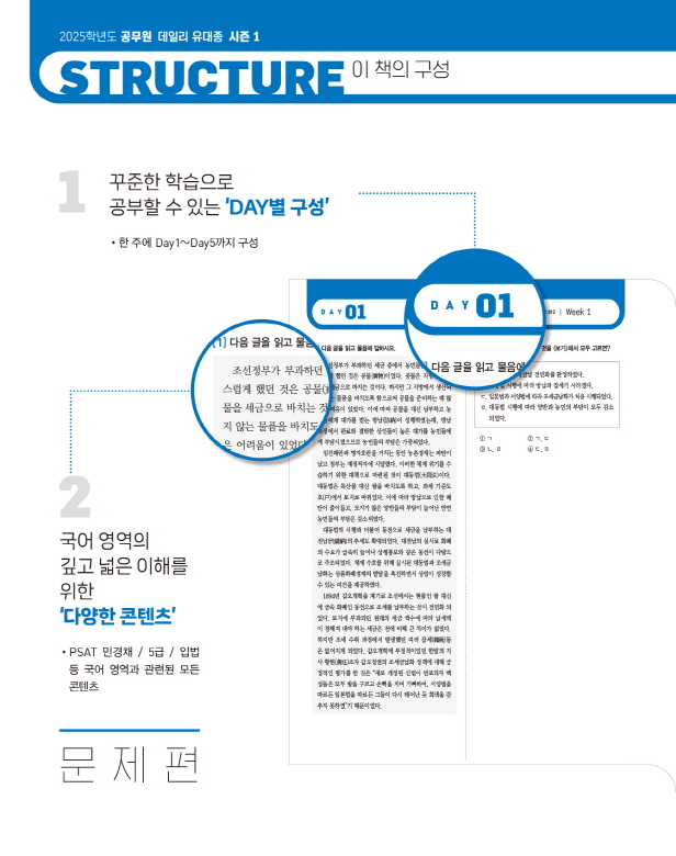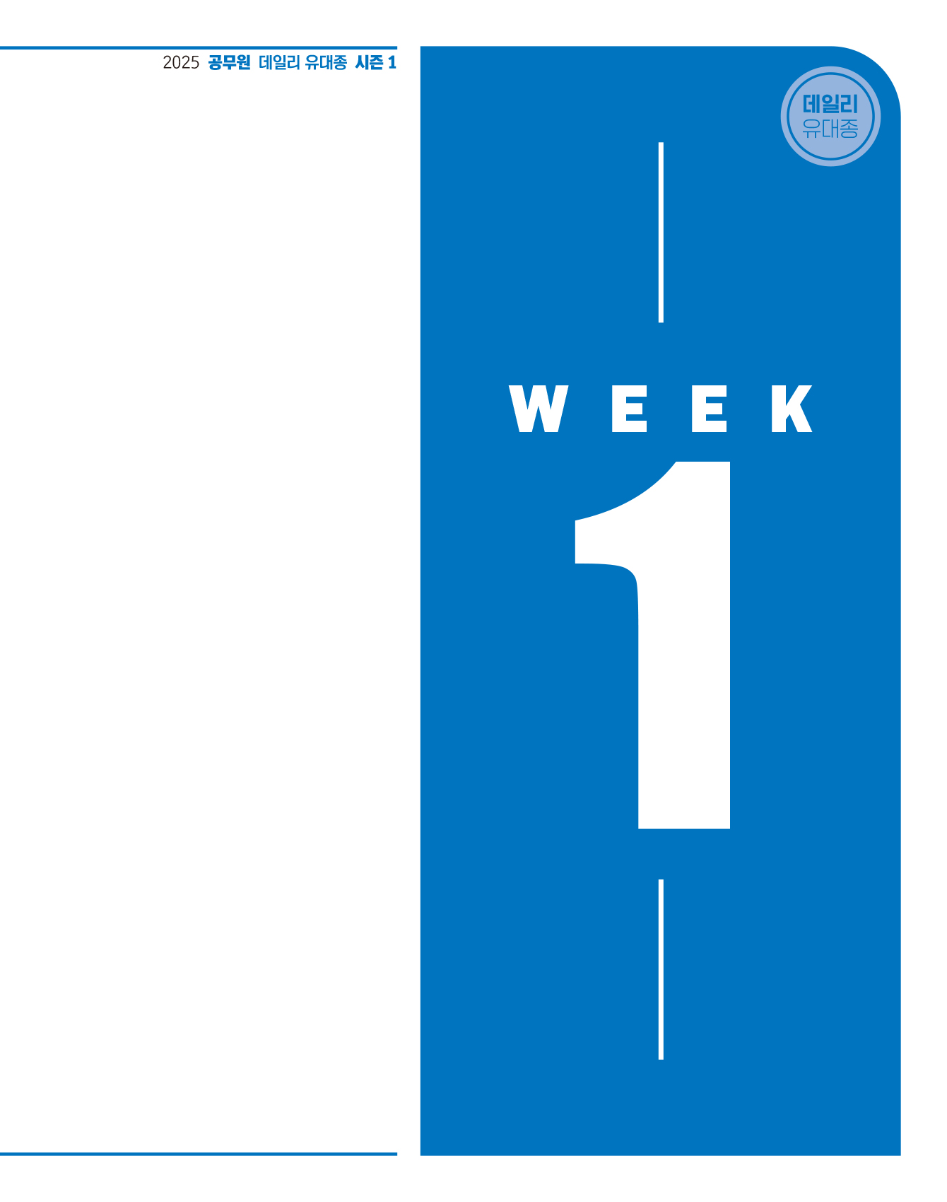 《2025 공무원 데일리 유대종 시즌 1》은 변화하는 2025년 공무원 국어 시험에 대비하여 다양한 문제들을 매일 꾸준하게 학습할 수 있는 교재입니다.
