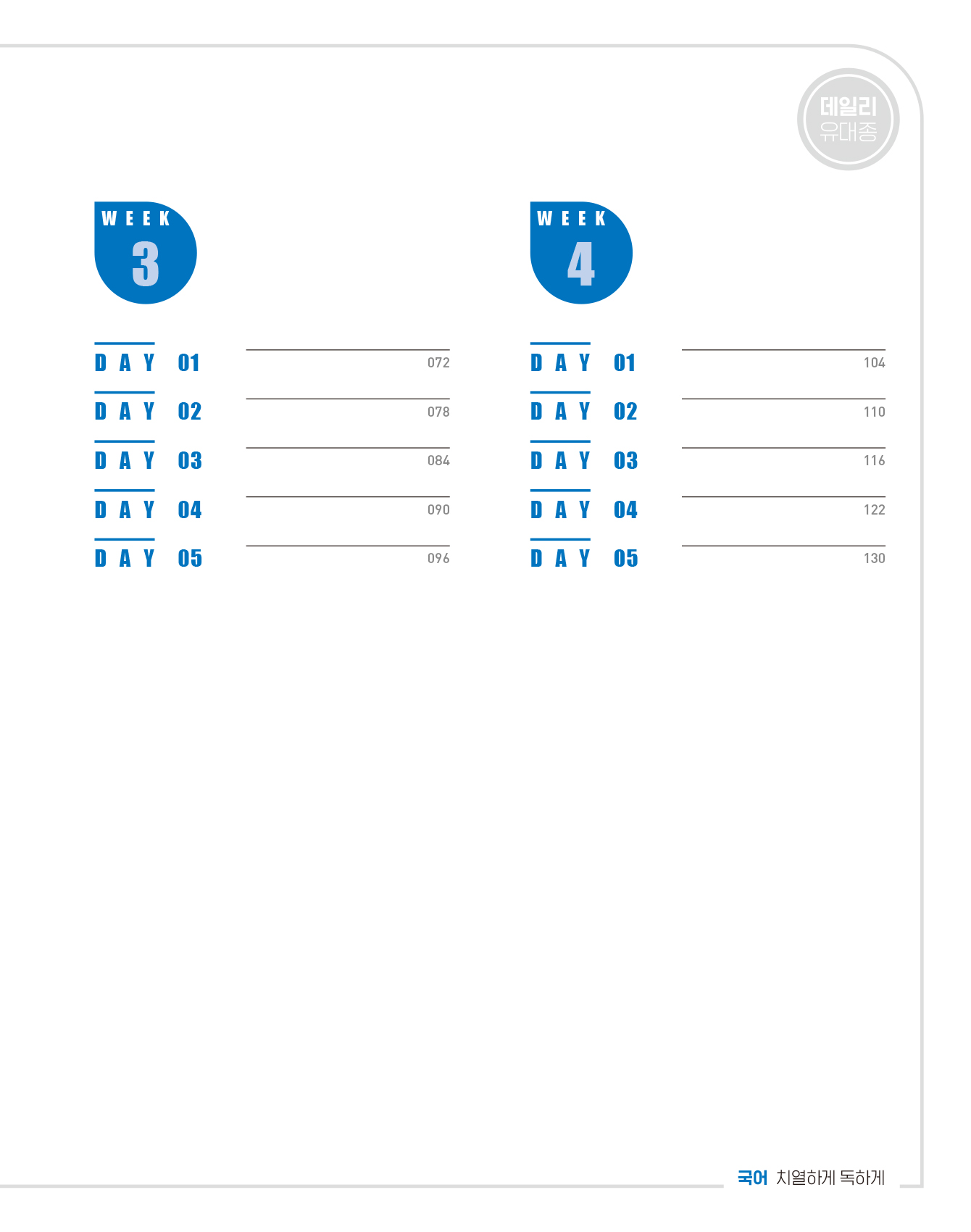 한 주에 Day 1~Day 5로 구성하여 꾸준하게 일정한 양을 학습할 수 있습니다.