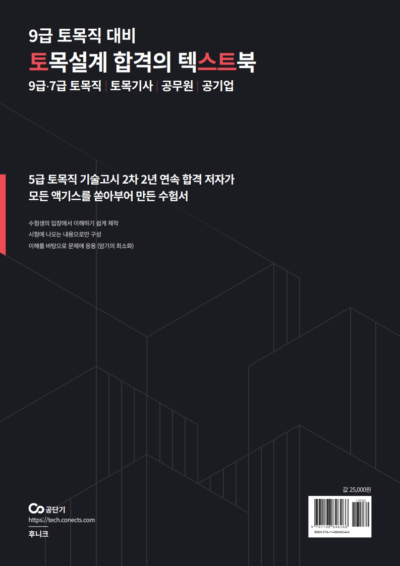 토목설계 기출문제를 집약한 토목직 기본 수험서. 토목에 대해 1도 몰랐던 노베이스 학생들도 쉽게 이해할 수 있도록 그림과 도표 위주로 쉽게 구성하였다. 시험에 나오는 내용 위주로 구성하였고, 단기간에 고득점을 목표로 하는 수험생들에게 적합한 수험서이다. 기존의 암기위주 공부방식에서 탈피하고 이해를 바탕으로 문제에 응용시켜 나가는 트레이닝을 통해 빠르고 안정적인 고득점 취득을 가능하게 해주는 최적의 수험서이다.