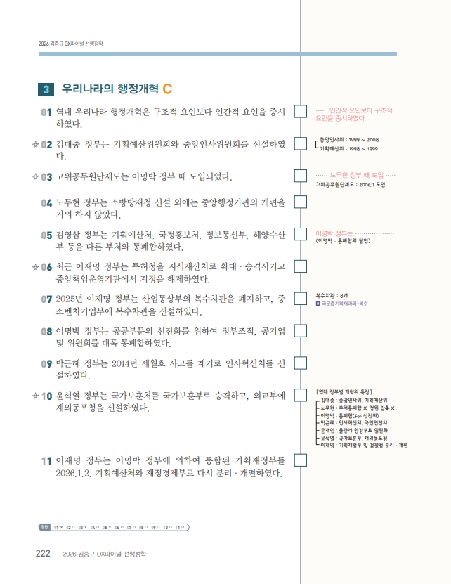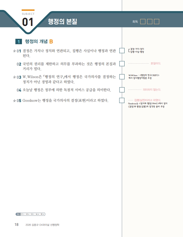 [행정학] 2026 김중규 OX파이널 선행정학