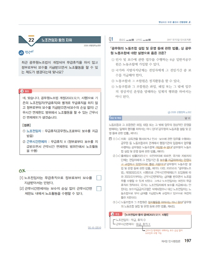 노조전임자 등의 지위