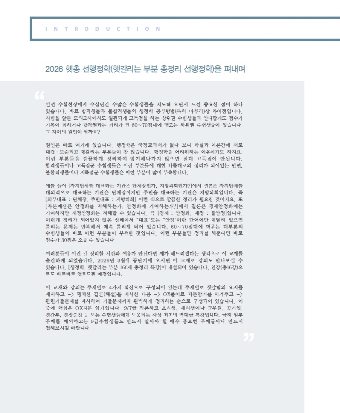 여러분들이 이런 걸 정리할 시간과 여유가 안된다면 제가 해드리겠다는 생각으로 이 교재를 출간하게 되었습니다. 2026년 3월에 공단기에 오시면 이 교재로 강의도 만나보실 수 있습니다. [행정학, 헷갈리는 부분 160제 총정리 특강]이 개설되어 있습니다. 인강(총16강)으로도 바로바로 업로드될 예정입니다.