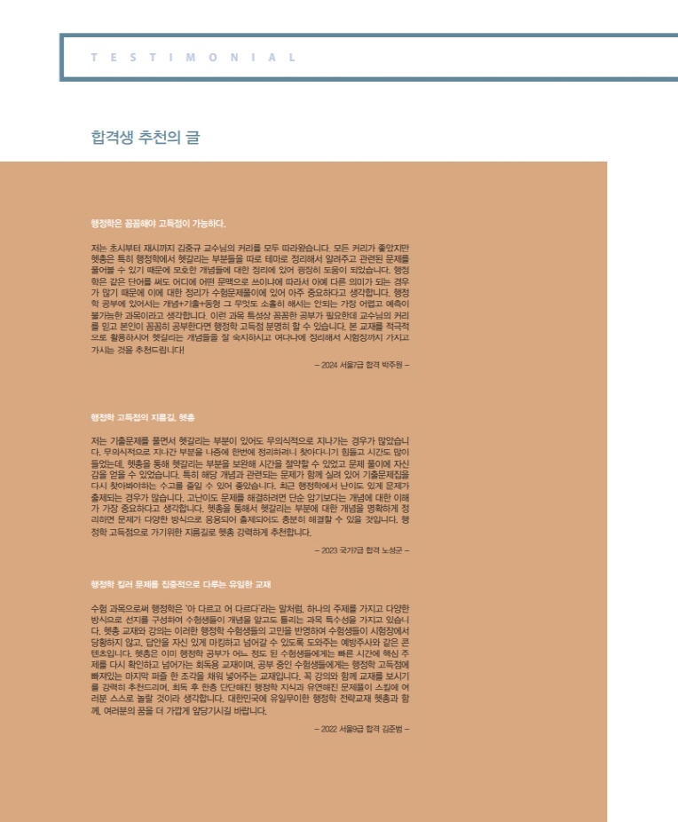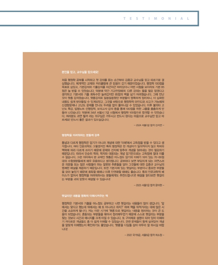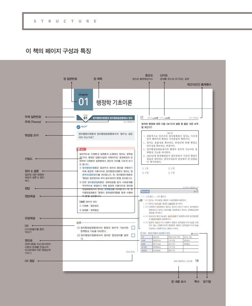 이 교재와 강의는 주제별로 4가지 섹션으로 구성되어 있는데 주제별로 헷갈림의 요지를 제시하고 -> 명쾌한 결론(해설)을 제시한 다음 -> OX풀이로 지문암기를 시켜주고 -> 관련기출문제를 제시하여 기출문제까지 완벽하게 정리하는 순으로 구성되어 있습니다. 이 중에 핵심은 OX지문 암기입니다. 9/7급 막론하고 초시생, 재시생이나 군무원, 공기업, 경간부, 경정승진 등 모든 수험생들에게 도움되는 사상 최초의 역대급 특강입니다. 극히 일부 주제를 제외하고는 9급수험생들도 반드시 알아야 할 매우 중요한 주제들이니 반드시 접해보시길 바랍니다.