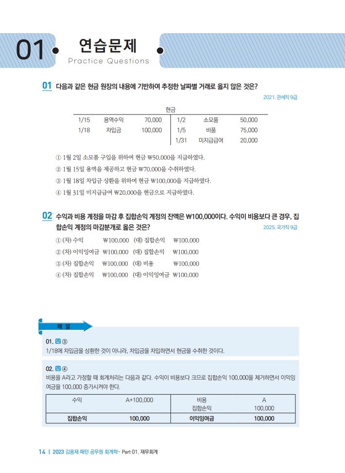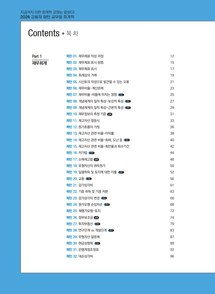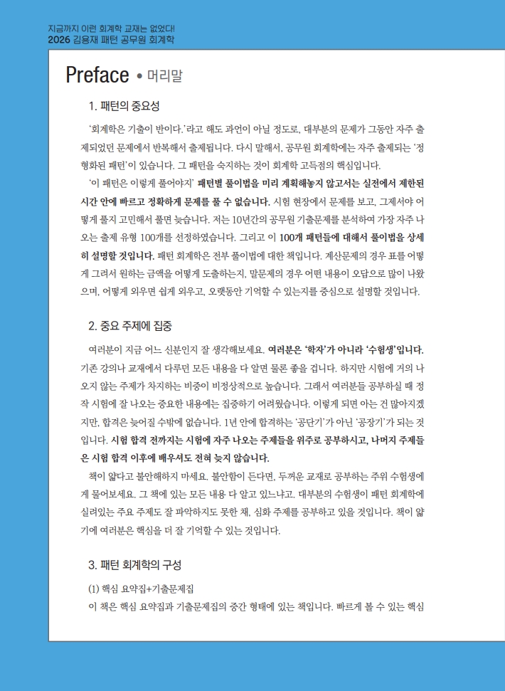 [회계학] 김용재 100개 빈출 패턴 공무원 회계학 핵심기출요약집