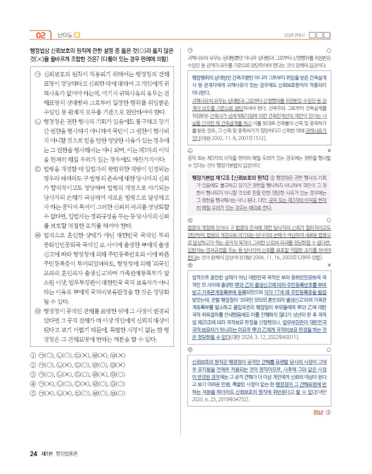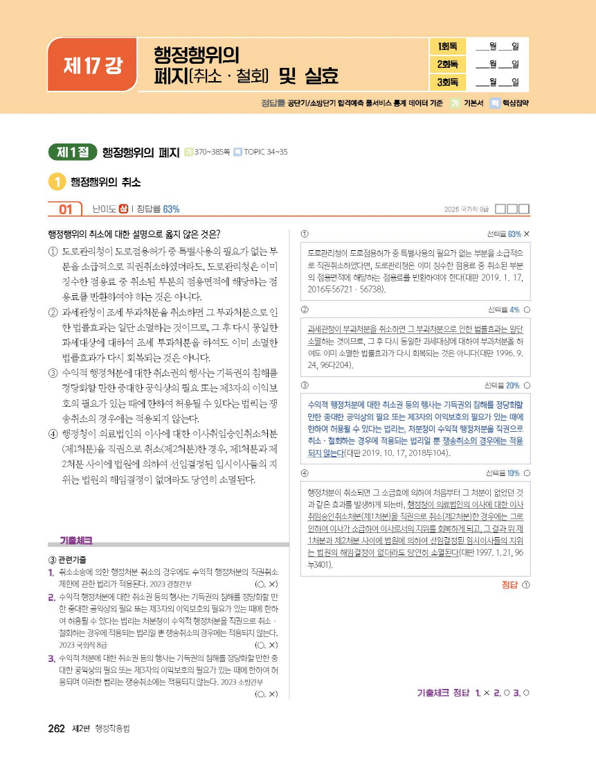 05 기출문제는 ‘절’ 단위로 시행일 기준 최신 순으로 배치하여 최근 출제경향을 보다 빠르게 파악할 수 있도록 하였습니다. 최신 기출문제를 통해 최근에 중요하게 다루어진 논점을 우선적으로 학습함으로써 효율적인 학습시간 관리가 가능해질 것입니다.
