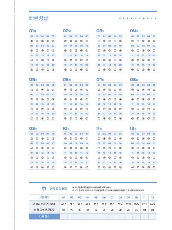 ‘빠른 정답’을 통해 12회분의 정답을 한 번에, 빠르게 확인할 수 있고, 수록된 연습용 OCR 카드를 활용하여 실전 마킹 연습이 가능합니다.