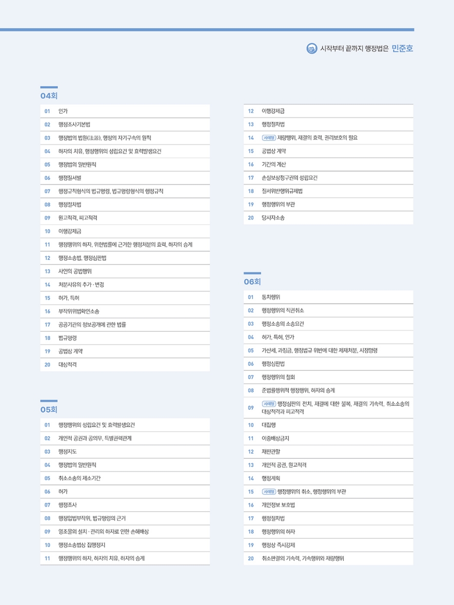 또한 수록된 문제들은 2026년 시험 대비를 위하여 최신판례, 최신기출, 개정법령을 완벽하게 반영하고 있으며, 최근 시험에서 보였던 사례 유형의 문제도 매 회차마다 포함하고 있습니다. 따라서 가장 「최신」의 구성이므로 단순 문제풀이 훈련을 넘어 실제 시험에서 맞닥뜨릴 수 있는 여러 가지의 경우를 충분히 경험하고 훈련할 수 있습니다.