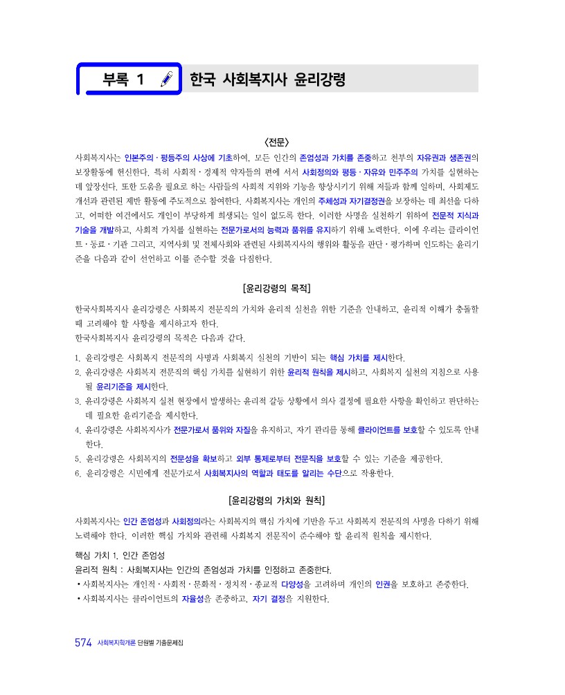 01. 한국 사회복지사 윤리강령 / 574