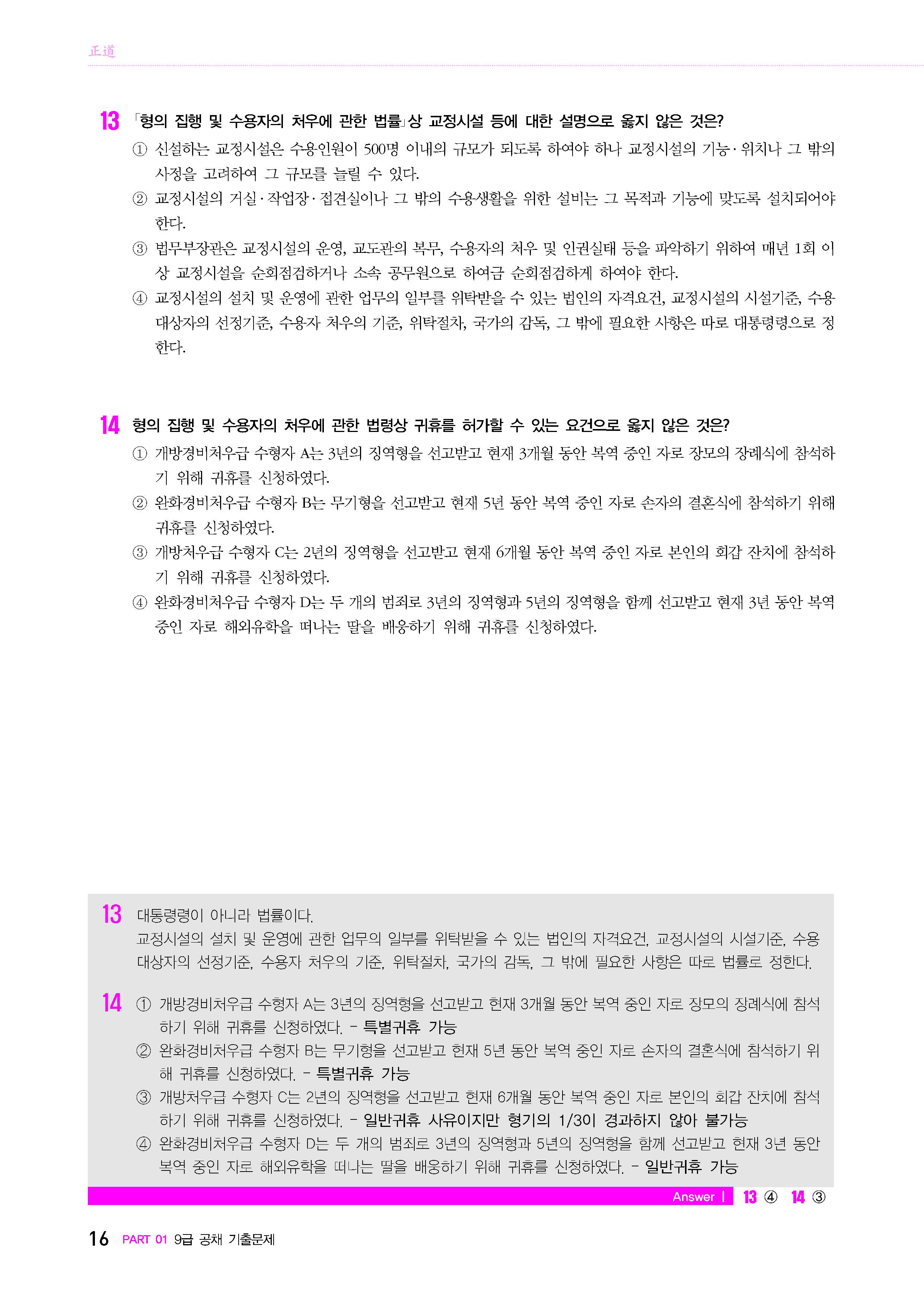 2010년, 2011년, 2012년, 2013년, 2014년, 2015년, 2016년, 2023년 경력채용 문제는 현직에 있거나 현재 正道 교정인이 되기 위해 노력하고 있는 분들의 땀과 고생으로 복원된 것들입니다. 법률이 개정되기 이전의 시험문제는 모두 현행법률에 따라 수정·복원하였습니다. 2023년 경력채용 문제는 8문제만 제대로 복원된 문제이고, 나머지는 답을 기반으로 해서 임의적으로 만든 문제이며, 2011년 경력채용 문제도 13문제만 제대로 복원이 된 것이고, 나머지 문제는 여러분들의 조언을 바탕으로 임의적으로 만든 문제입니다.