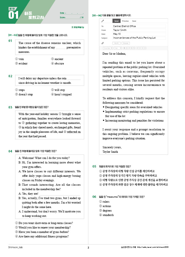 하프 모의고사 01회