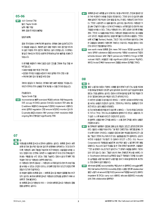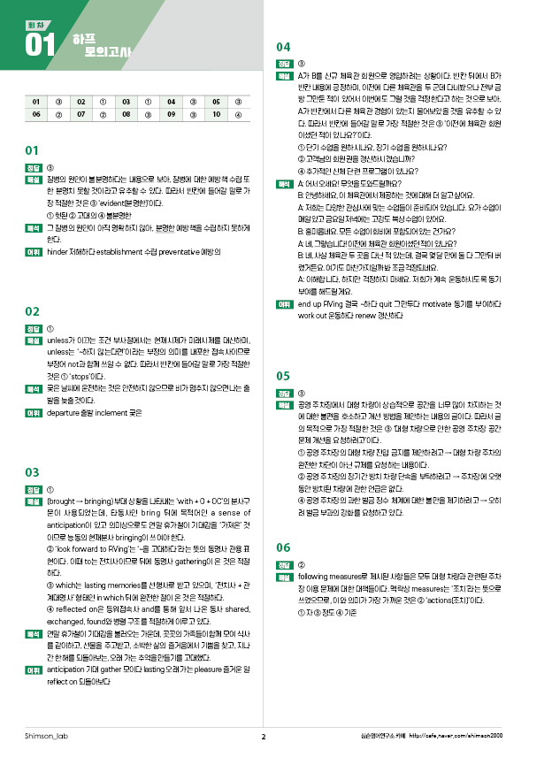 ‘많은’ 문제를 푸는 것도 중요하지만, ‘좋은’ 문제를 푸는 것은 훨씬 더 중요합니다. 본 교재는 여러 교수진과 심슨 영어 연구소가 함께 우수 문항들을 제작 및 엄선한 후, 철저한 검증과 난이도 조절을 위한 수정 과정을 거쳐 완성되었습니다. 수험생들이 양질의 문제를 효율적으로 풀고 실력을 쌓아 실전에 대비할 수 있도록 특별히 노력을 기울였습니다.