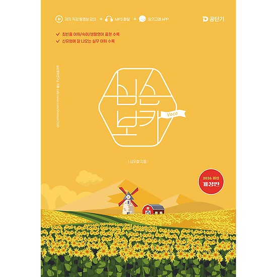『2026 심슨 보카』는 학습의 부담감을 줄이기 위해 중요 핵심 어휘만 표제어로 선정한 대신, 파생어, 유의어, 예문, 그리고 부록(기초 어휘)으로 어휘를 확장하여 광범위하게 학습할 수 있도록 구성하였습니다. 특히 2026 최신 개정판으로 오면서 파생어와 유의어 부분에 지엽적인 단어는 최대한 삭제하고 최근 중요하게 떠오르는 단어는 새롭게 추가하는 등 심혈을 기울여 개정하였습니다.