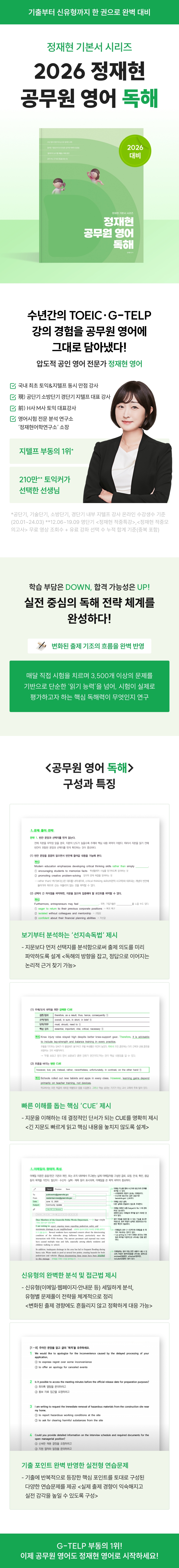 • 긴 지문을 읽을 때 반드시 주목해야 할 결정적 단서를 ‘CUE’로 명확히 제시하여 핵심을 놓치지 않도록 돕습니다.