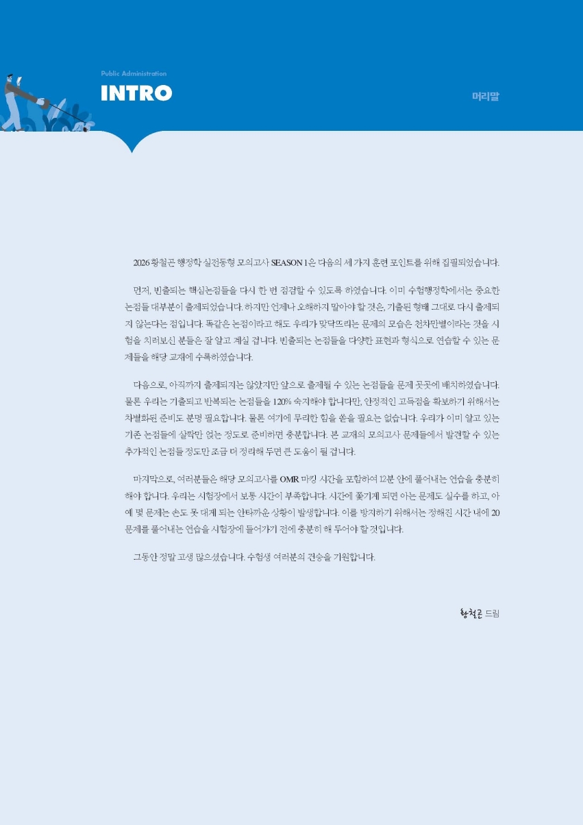 『2026 황철곤 행정학 실전동형 모의고사 SEASON 1』은 다음의 세 가지 훈련 포인트를 위해 집필되었습니다.
