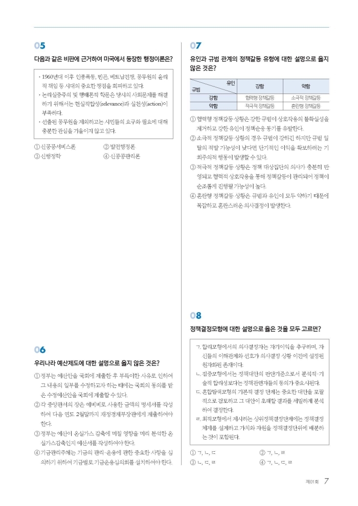 먼저, 빈출되는 핵심논점들을 다시 한 번 점검할 수 있도록 하였습니다. 이미 수험행정학에서는 중요한 논점들 대부분이 출제되었습니다. 하지만 언제나 오해하지 말아야 할 것은, 기출된 형태 그대로 다시 출제되지 않는다는 점입니다. 똑같은 논점이라고 해도 우리가 맞닥뜨리는 문제의 모습은 천차만별이라는 것을 시험을 치러보신 분들은 잘 알고 계실 겁니다. 빈출되는 논점들을 다양한 표현과 형식으로 연습할 수 있는 문제들을 해당 교재에 수록하였습니다.