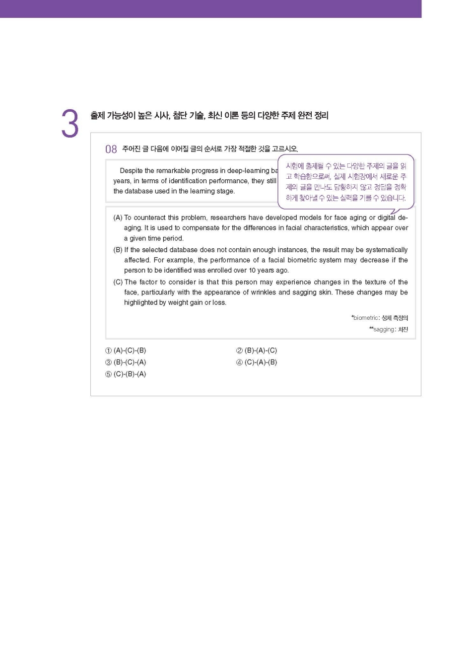 시험에 출제될 수 있는 다양한 주제의 글을 읽고 학습함으로써, 실제 시험장에서 새로운 주제의 글을 만나도 당황하지 않고 정답을 정확하게 찾아낼 수 있는 실력을 기를 수 있습니다.