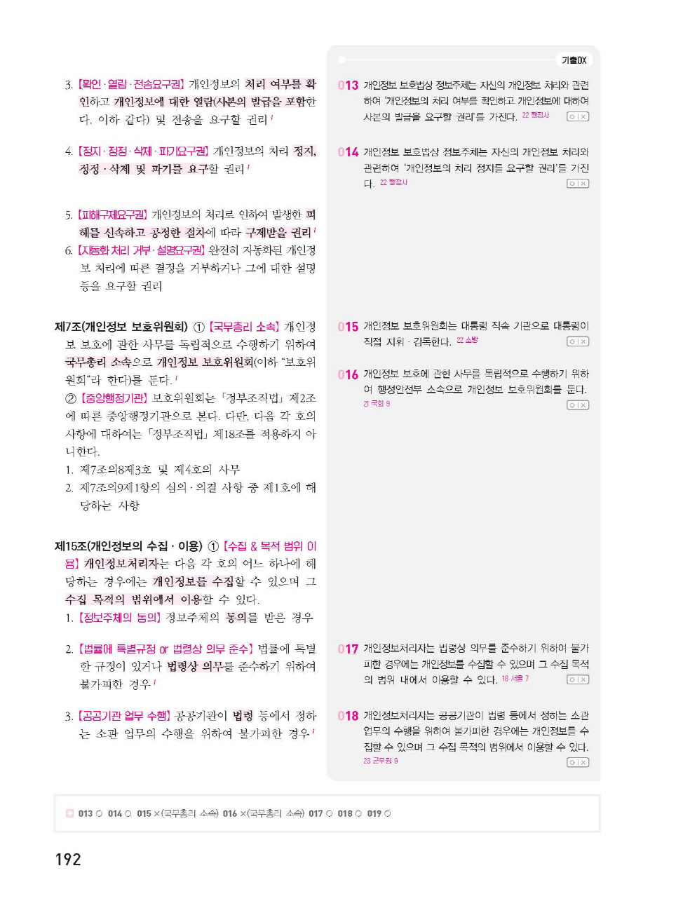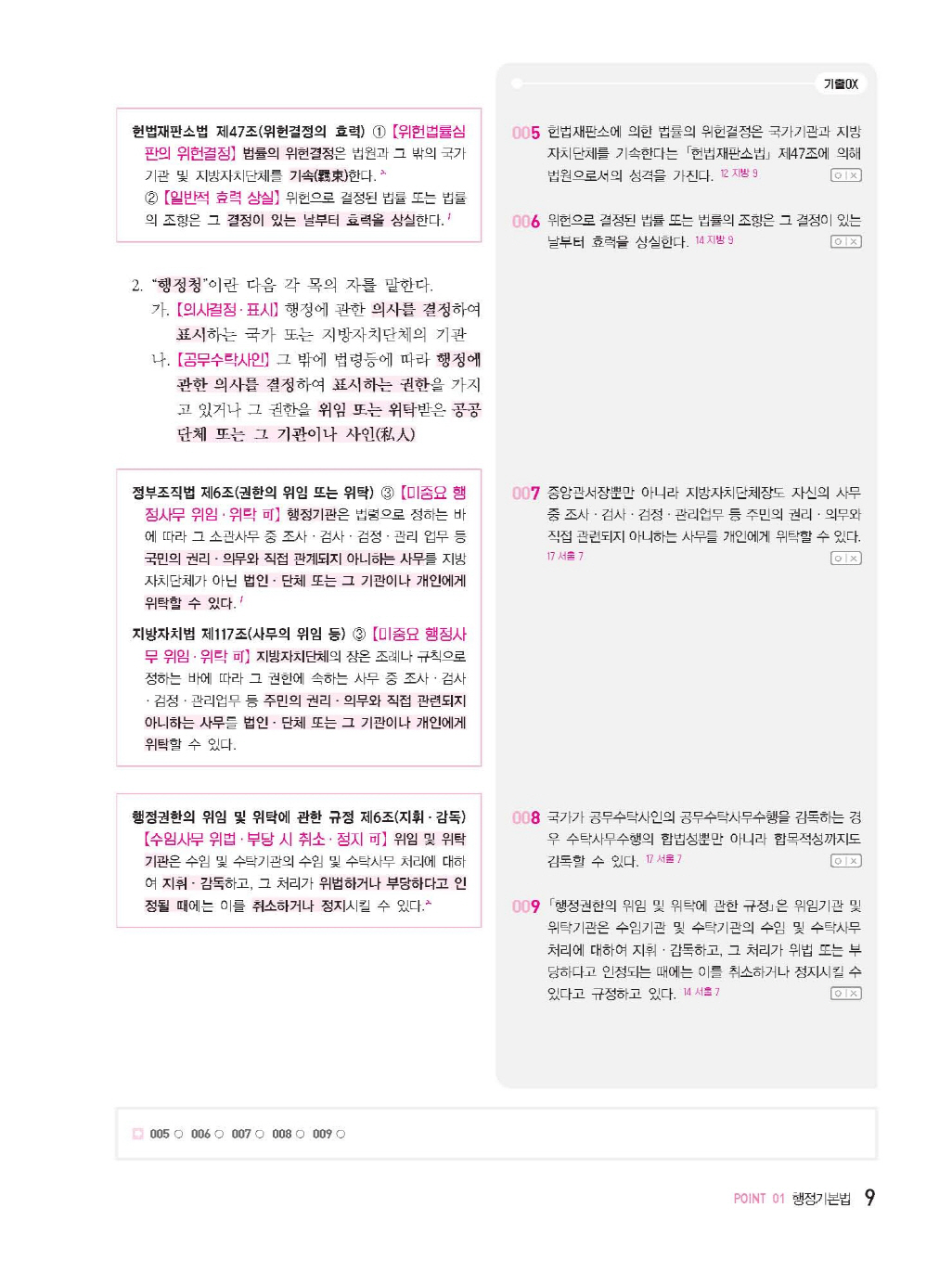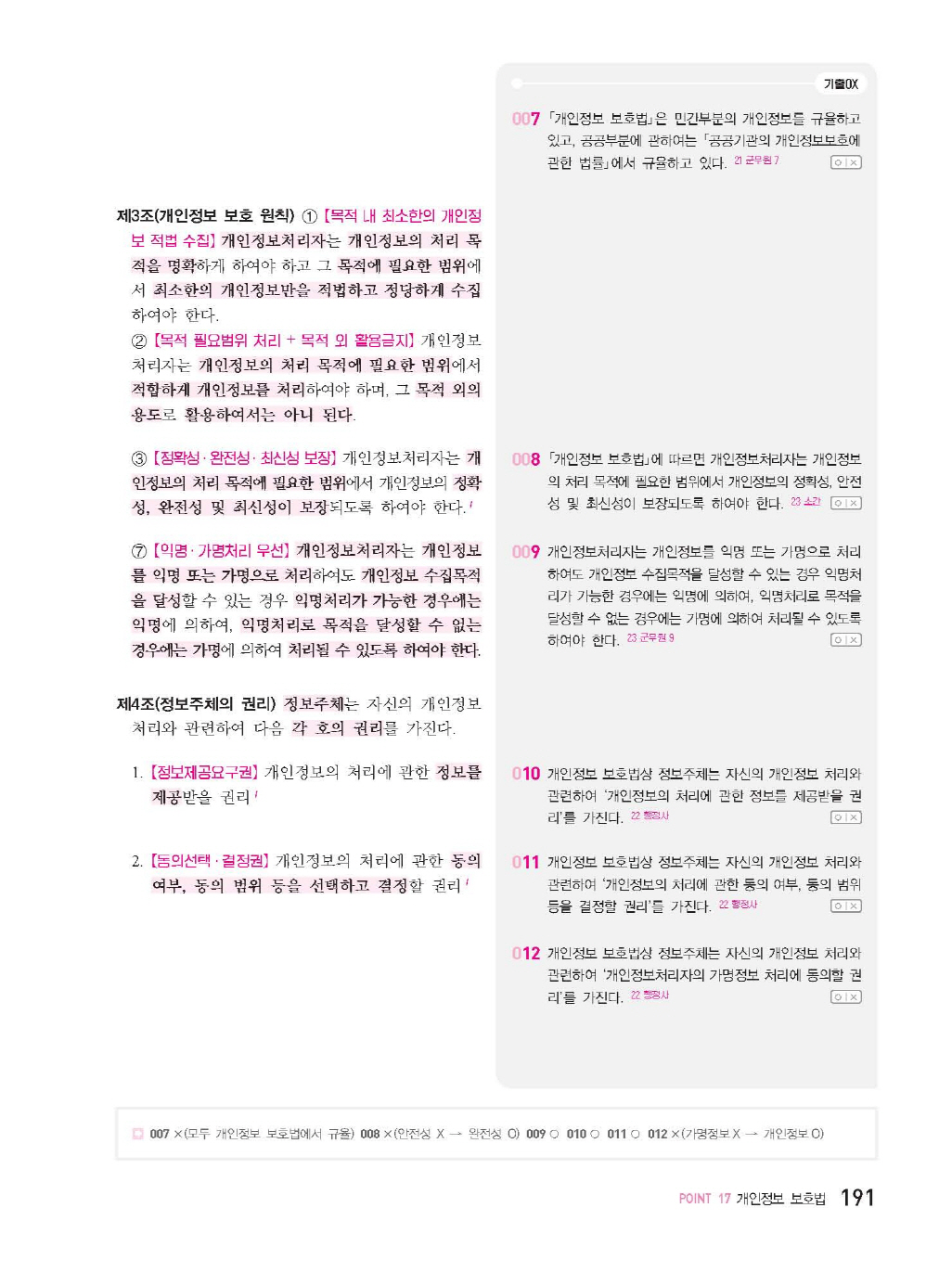 본문 왼쪽의 법령지문을 꼼꼼하게 암기하기보다는 오른쪽의 기출지문 OX를 통해 출제포인트를 익히고 법령을 이해하려고 하십시오.