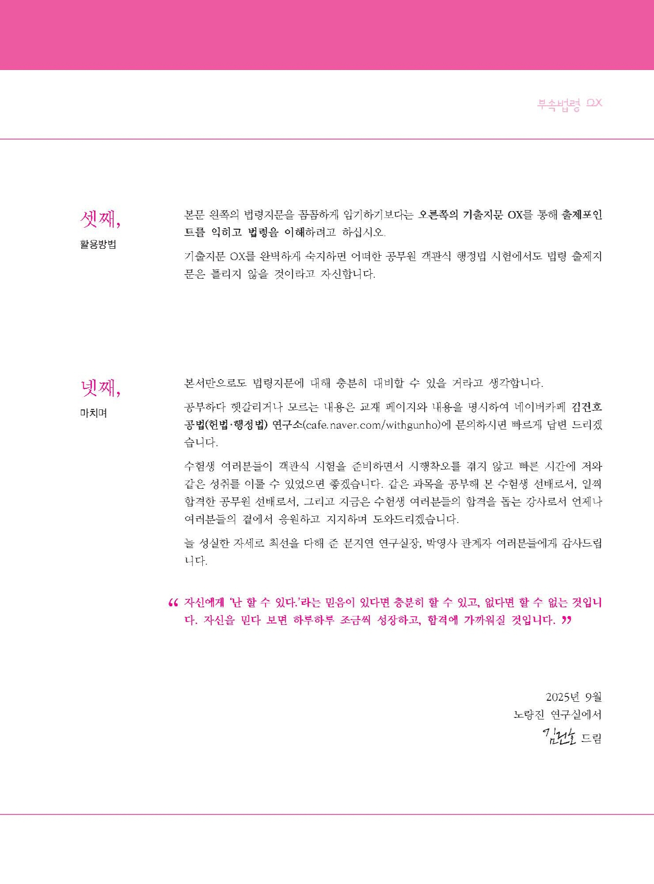 공부하다 헷갈리거나 모르는 내용은 교재 페이지와 내용을 명시하여 네이버카페 김건호 공법(헌법·행정법) 연구소(cafe.naver.com/withgunho)에 문의하시면 빠르게 답변 드리겠습니다.