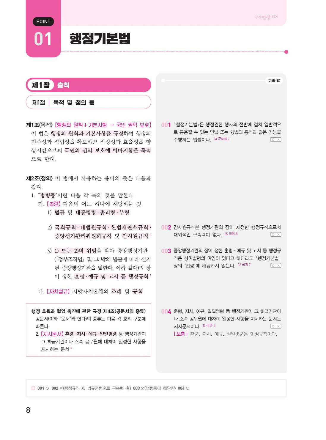 기출지문 OX를 완벽하게 숙지하면 어떠한 공무원 객관식 행정법 시험에서도 법령 출제지문은 틀리지 않을 것이라고 자신합니다.